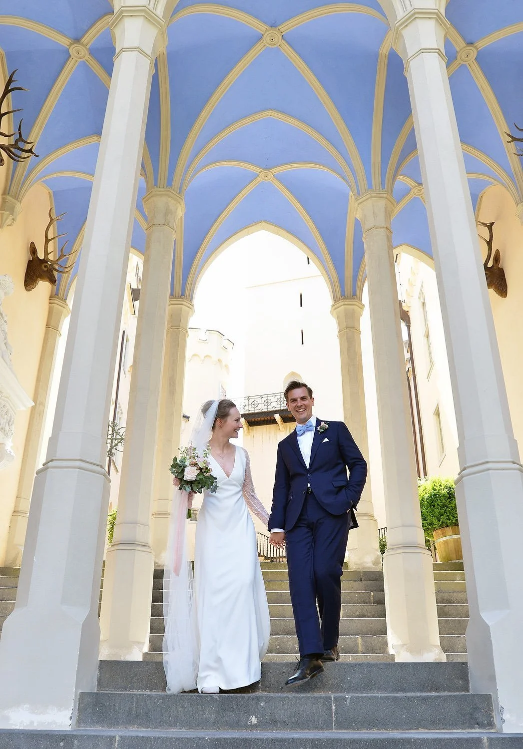 Die Trauung von Philippa und Christopher fand in der malerischen Kulisse von Schloss Stolzenfels in Koblenz statt; absolut passend zu diesem zeitlos-eleganten Brautpaar!